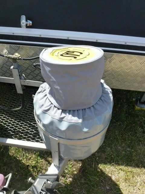 The top section of the Gas Bottle Cover is removeable and you can access your regulators through it. This section if left on whilst travelling will stay in place!