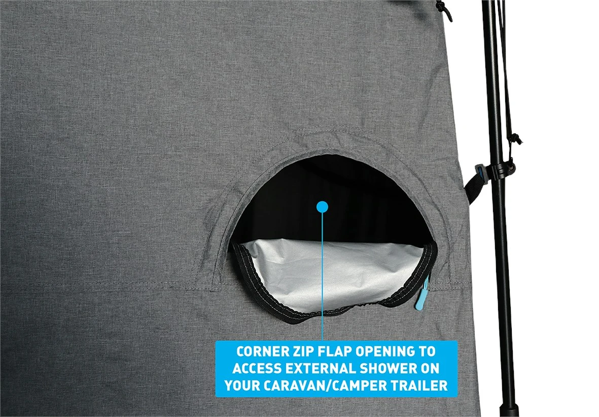 Corner zip flap opening to access external shower on your caravan / camper trailer