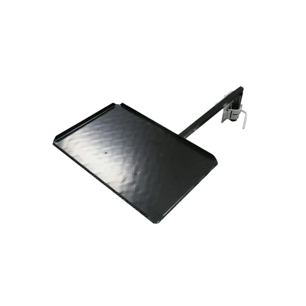 The ORIGINAL Swing Arm BBQ Table BBQARM is the must-have caravan and travel accessory for your outdoor barbecues. Australian designed and built on the Gold Coast, this space-saving innovation simply mounts to your caravan drawbar or rear bar to create a sturdy ‘out of the way’ place for your BBQ. Swing it away when not using. The BBQARM kit includes: 1. ARM – black powder-coated galvanised steel available in 2 lengths. Arms weights are 650mm 1.65kg; 850mm 1.95kg * 650mm * 850mm 2. TRAY – made from 2.5mm aluminium chequer-plate with approx. 20mm upturned edges all around. Regular tray weighs 2.5kg and large tray weighs 3.5kg. * regular 560mm x 360mm (suits Weber Baby Q & Q2000) * large 700mm x 500mm (suits Ziggy and most other portable barbecues) * can choose black powder-coated option 3. UNIVERSAL DRAWBAR MOUNT – custom designed to fit most caravan/camper drawbars/a-frames (50mm or 2 inch drawbars) without the need for drilling holes or welding. It is made from heavy-duty 5mm steel and weighs only 2.7kg. The bracket is 175mm long and will require this much space on your drawbar.