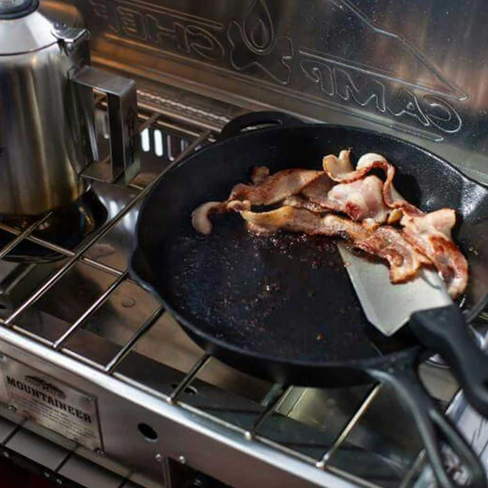 Create the most delicious meals from scrambled eggs to monkey bread with this can’t-go-wrong 30cm, 12 Inch Seasoned Cast Iron Skillet. The handle is designed for comfort as you cook, carry and pour with the pan, while dual pour spouts add to the convenience. Best of all, you can skip the hours of prep time with your brand new cast iron thanks to its seasoned, chemical-free finish. Get cooking right away!