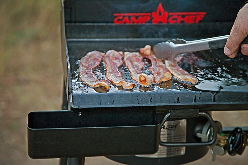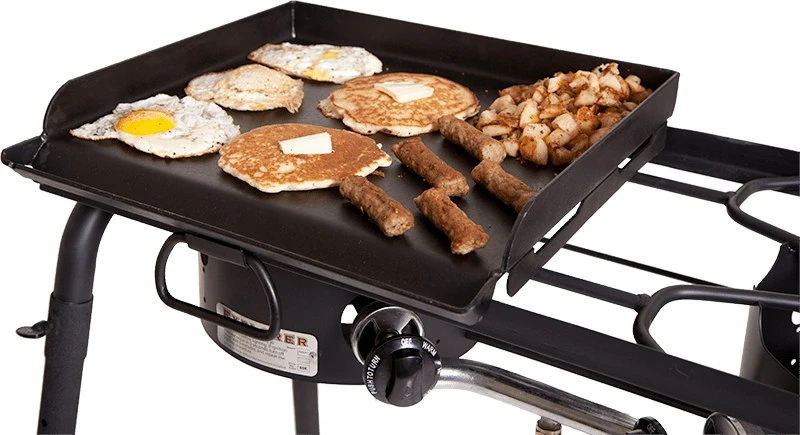 Cook fresh fish or make your favorite hot sandwiches on the Professional Flat Top Griddle. This griddle is easy to cook with and easy to clean because of its restaurant-style high sides and convenient grease drain. The added heat diffuser plate distributes heat evenly and minimizes hot spots making the perfect even cooking surface. Pre-seasoned with Camp Chef’s “True Seasoned Finish,” this griddle is ready to use out of the box.