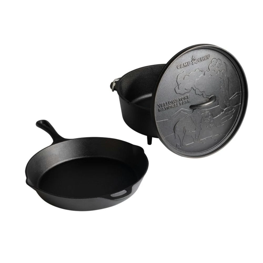 Celebrate the 100th Anniversary of our National Parks with this commemorative cast iron set. This limited edition set includes a 6 quart 12″ dutch oven, 12″ cast iron skillet, and interchangeable lid.