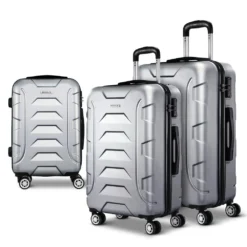 Wanderlite 3pc Luggage Travel Sets Suitcase Trolley TSA Lock Silver