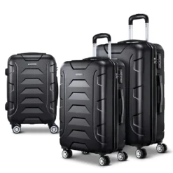 Wanderlite 3pc Luggage Travel Sets Suitcase Trolley TSA Lock Bonus Black