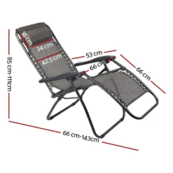 Zero Gravity Chair Outdoor Chairs Beach Lounger Portable Reclining Sun Lounge Folding Camping Grey