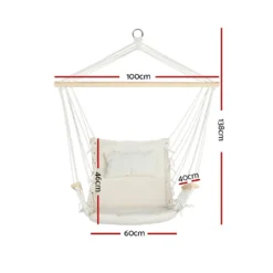 Gardeon Hammock Chair With Stand Outdoor Swing Hanging Bed Tassel Cream