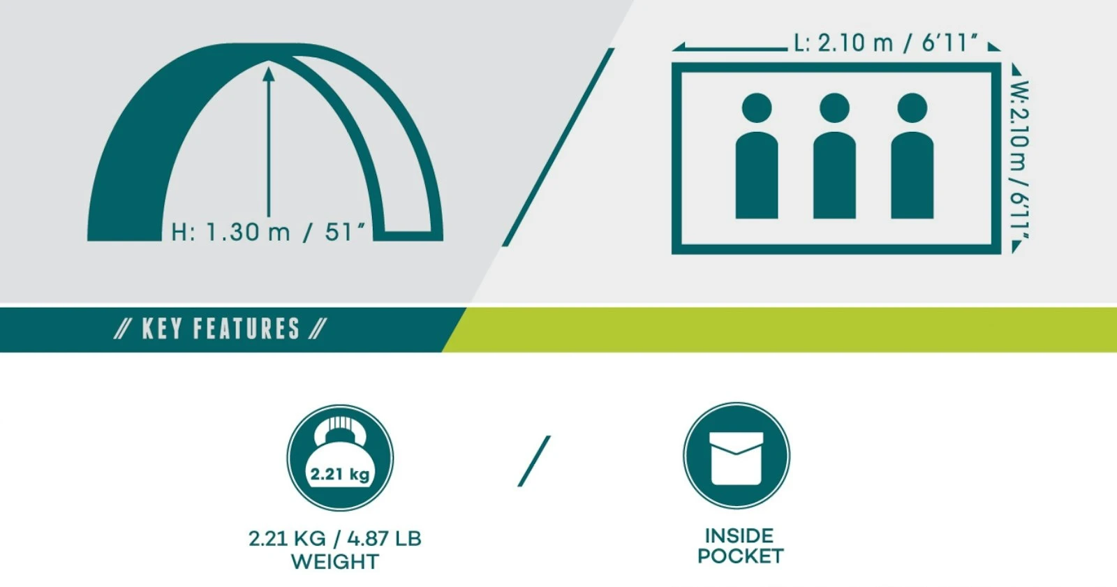 This perfect, all-around tent is perfect for beach days to picnics to provide some extra shelter. This tent has a three person capacity and is easy and quick to set up.