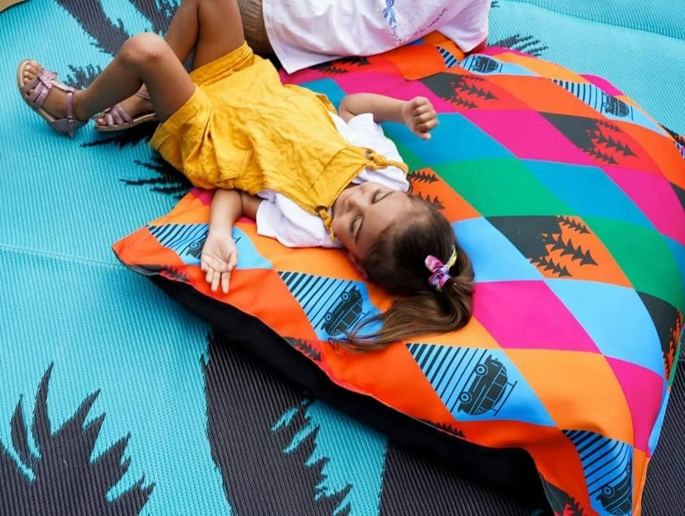 Fill them with your choice of recyclable materials such as old clothing, clean rags, or some of your children’s soft toys that are hanging about in the cupboard collecting dust. It takes approximately 100 litres of beans (normally one bag) to fill your giant cushion cover/bean bag if using polystyrene beans. We recommend using eco-friendly beans that can be purchased from envee.eco/products/beans. Standard beans can also be purchased from your local homeware store.
