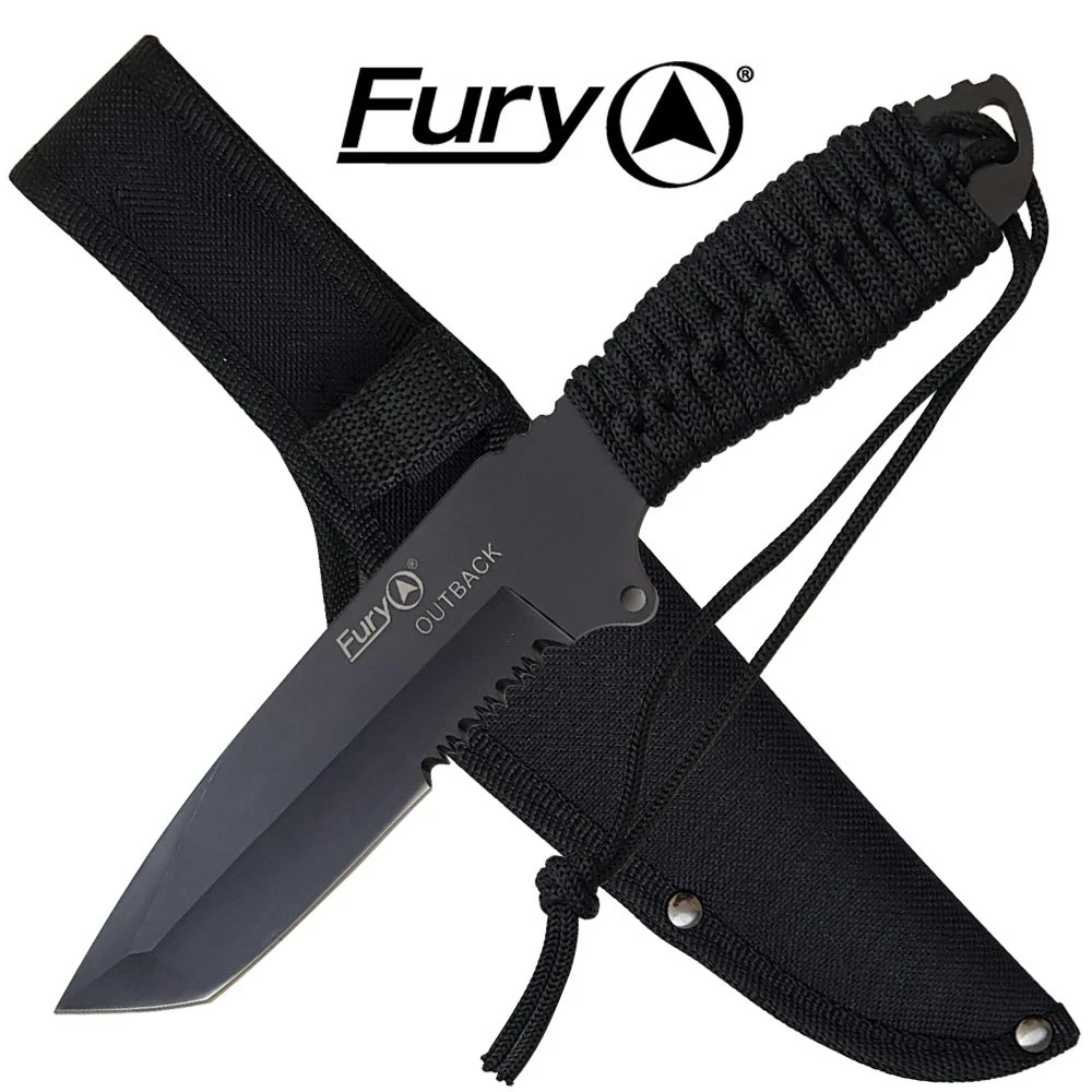 Fury Outback Fixed Blade Hunter Knife with Black Cord Wrapped Handle , an Ideal Survival and Throwing Knife.
