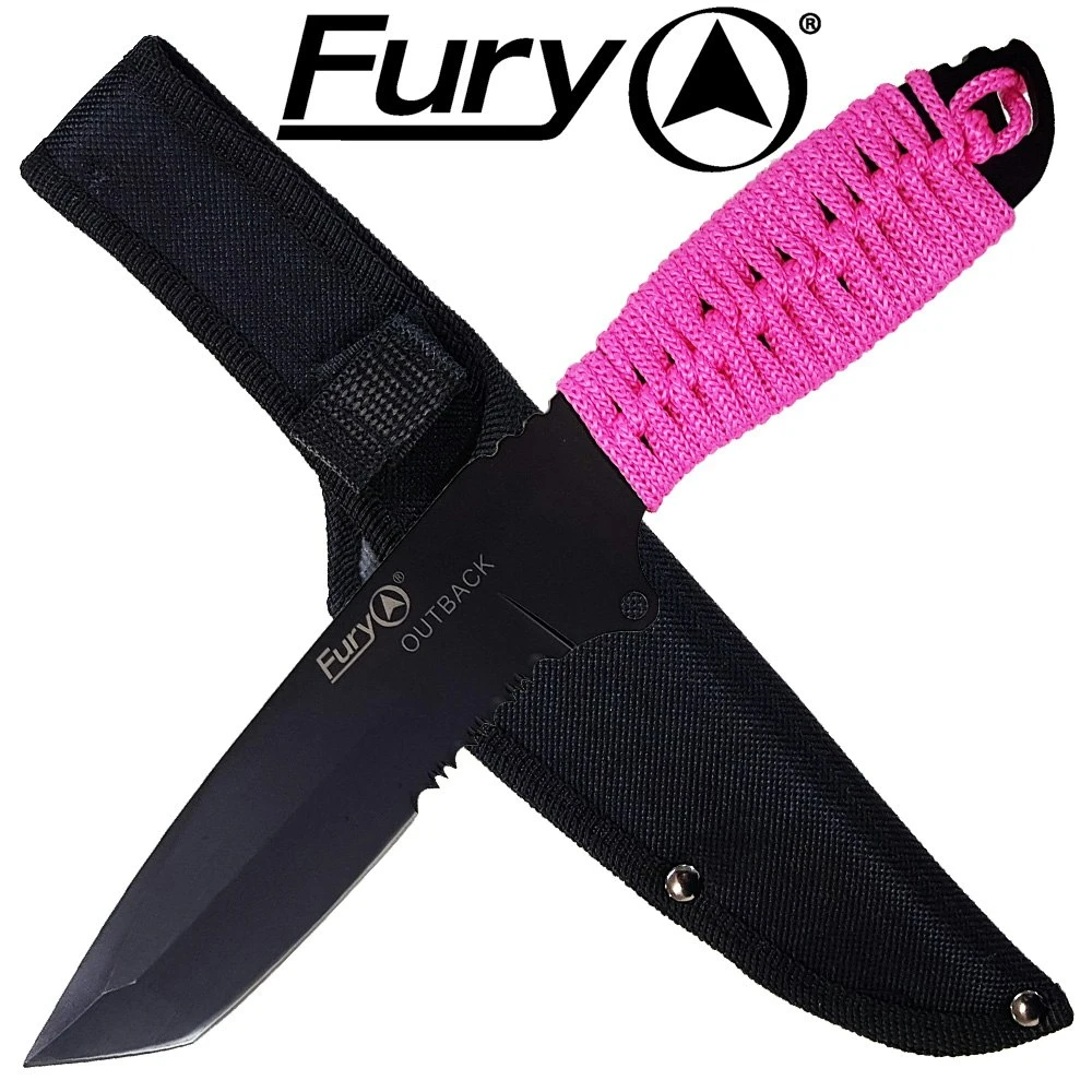 Fury Outback Fixed Blade Knife with Pink Cord Wrapped Handle for an Improved Grip with a Tactical Look.