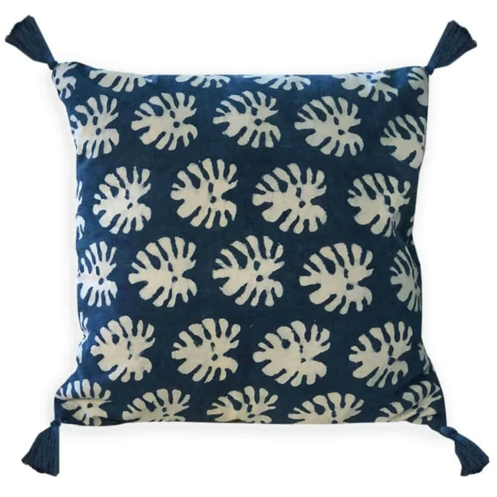 Printed on both sides with a striking foliage design, the tassels on each corner beautifully complement the colours of the design with a zip closure cleverly concealed underside. Bring a touch of the exotic to any space with this earth-friendly and stylish accessory.