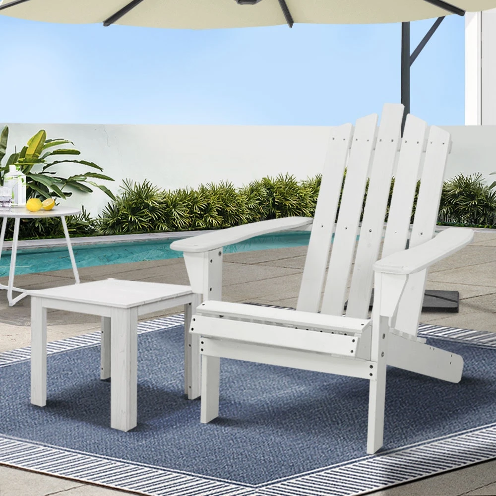 Gardeon Outdoor Chairs Table Sun Lounge Beach Chair Adirondack Patio Garden – White