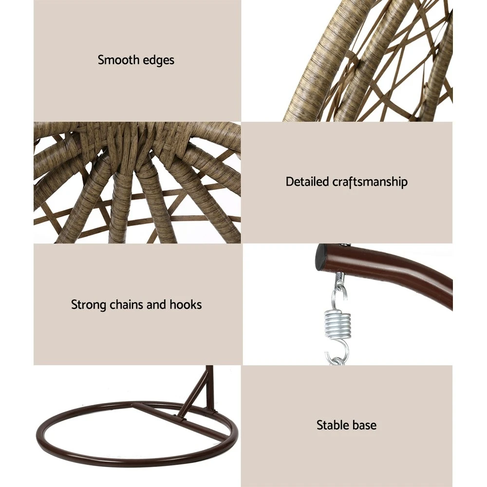 Gardeon Outdoor Hanging Basket Swing Egg Chair With Stand Soft Cushion Indoor Latte