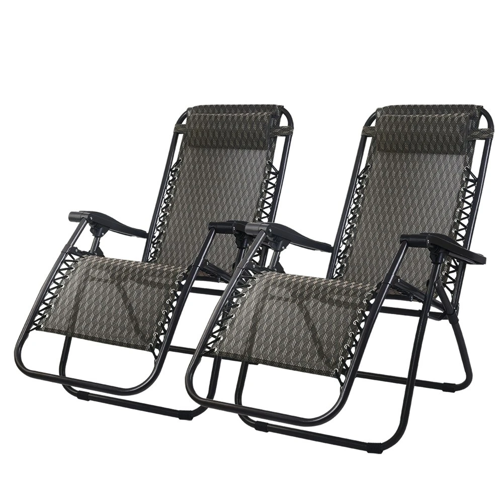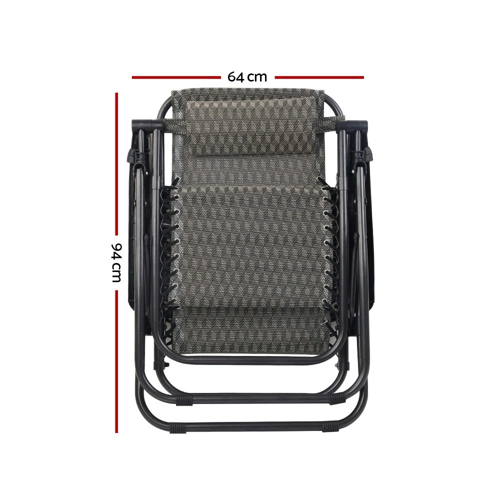 Gardeon Zero Gravity Chairs 2PC Reclining Outdoor Furniture Sun Lounge Folding Camping Lounger Grey