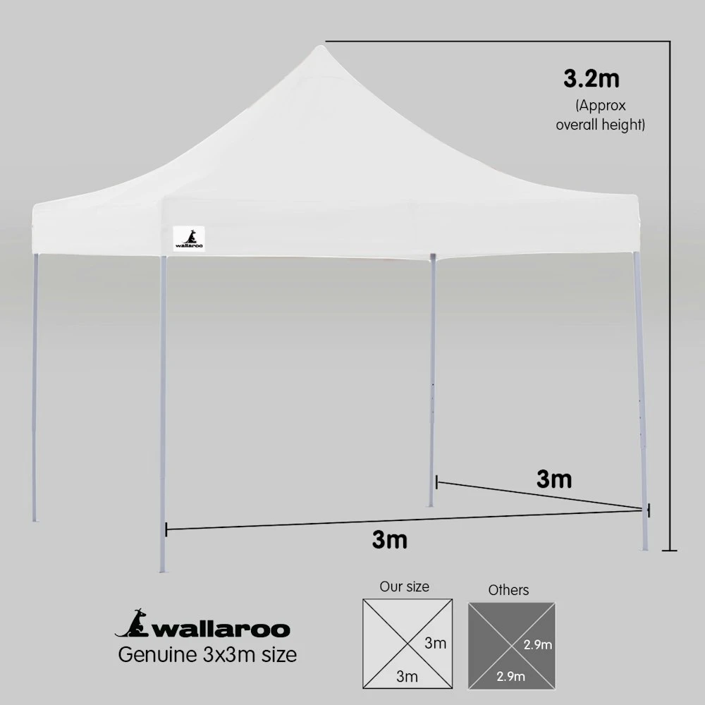Our strong triangulated frame system means this marquee comprises only 2 main parts. The frame is one complete assembly which expands to 3x3m and the roof is fitted over the frame as it unfolds, giving you instant cover from rain or sun! You can then set the height of the legs and fit the walls if required. When you’re done you can just as easily fold the frame and roof away into the carry bag we provide, ready for transport or storage. The entire setup process will take 2 or 3 people just a few minutes!