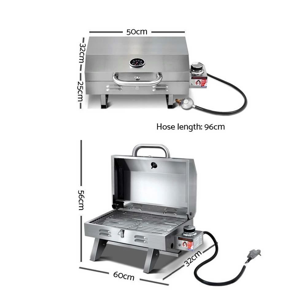 Have BBQ will eat. And the Grillz Portable Gas BBQ is just perfect for a BBQ anytime, anywhere. Made from durable and high quality stainless steel, the BBQ comes with a convenient fold-up design with retractable steel legs, large front carry handle and a locking lid. Two 10,000BTU stainless steel burner with high heart conduction for better efficiency, safe piezo electric twist start ignition, integrated thermometer for enhanced cooking, grease collection tray for easy cleaning after and a dedicated flame tamer to prevent food waste from dropping onto the burner. Together with its large cooking area, the Grillz Portable Gas BBQ is right at home with sumptuous meals ready in minutes. Get yours today.