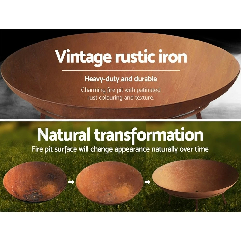 Standing like a well-seasoned outdoor art installation, the Grillz Rustic Fire Pit is a definite conversation piece. With its lovely patinated finish and texture, the cast iron fire it looks as good as it performs. Providing a heartwarming experience for all who gathers around it for any event under the cool night sky. Or even during the day. The 60cm deep dish bowl and stand ensemble allows ample space for plenty of coal or firewood to keep the fire going. Designed to be heat, frost and corrosion-resistant, the sturdy and durable fire pit is ready to light up your lifestyle with cherish moments in every season. Features: Mild custom natural rust finish 60cm large deep dish bowl Portable Large burning capacity Wood or charcoal High-heat enabled Specifications: Material: Iron Colour: Rust (Natural) Size: 60cm x 60cm x 28cm Fire bowl size: 60cm x 12cm Base size: 50cm x 50cm x 22cm Product Contents: Grillz Fire Pit x 1