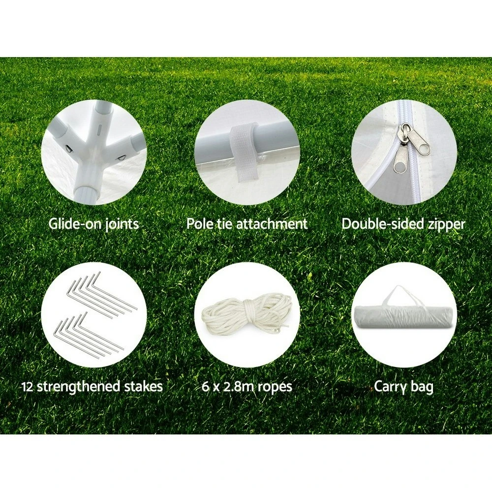 Featured with a variety of ground and canopy coverage, and door and window panel permutations, our INSTAHUT canopy lets you choose the configuration you require to meet your need. All panels are removable and can be adjusted for different positions. The sturdy powder-coated steel legs and struts keep the entire structure steady and firm in all weather conditions whilst the canopy is both UV and water-resistant. The interior is spacious and the openings provide ample ventilation to let occupants stay cool and comfortable at all times. Not least, all components are easily held together with convenient heavy-duty zipped and velcro attachments.