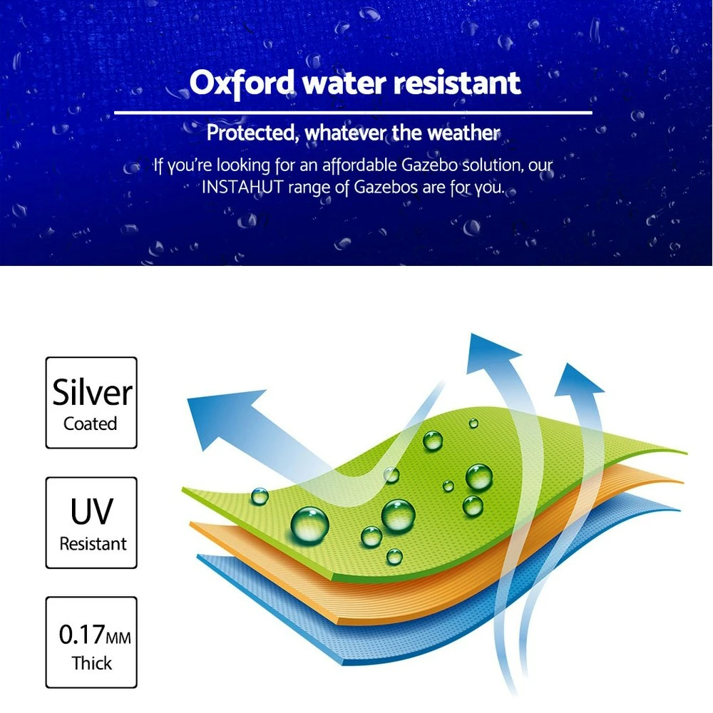 Featuring high density, long lasting silver-coated oxford fabric with effective UV and water repellent treatments, this INSTAHUT 3X4.5m Pop Up Gazebo provides a lovely ground and canopy coverage of 300 x 450cm. It is perfect for all your upcoming outdoor activities, as a sunshade station as well as a shelter for unexpected rains.