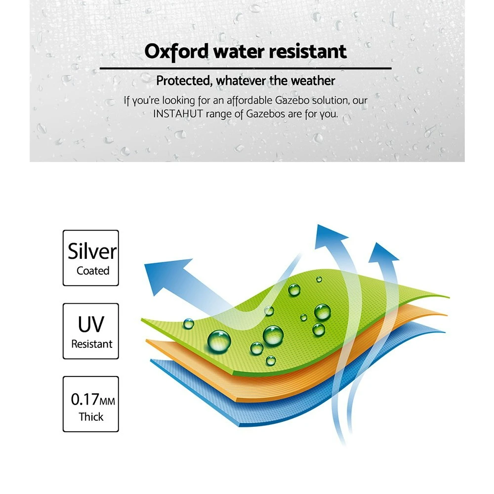 Featuring high density, long lasting silver-coated oxford fabric with effective UV and water repellent treatments, this INSTAHUT 4.5X3 Pop Up Gazebo provides a lovely ground and canopy coverage of 450 x 300cm. It is perfect for all your upcoming outdoor activities, as a sunshade station as well as a shelter for unexpected rains.
