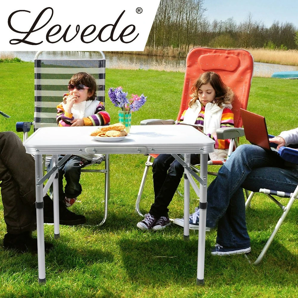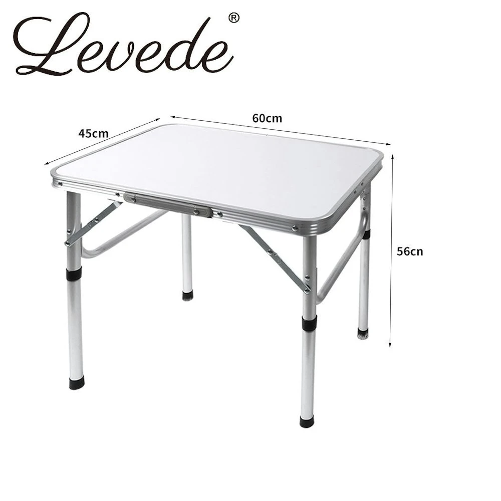 Our Foldable Camping Table is an ideal solution for an outdoor family picnic or camping trip with your loved ones. Designed with convenience in mind eases all those troubles of outdoor picnic. Very simplistic to setup with its ultimate compact design. Exceptionally easy to carry around due to its minimal weight. A special handle is provided at the side of the main board conveniently carry it with ease. A travel friendly product. Designed to be lightweight and portable easy to carry and easy to handle. Easy to adjust its height for convenient use. Fold it away foldable design for an easy wrap up after use. Built with quality in mind strong and sturdy aluminium frame. Highly resistant towards rust water and chemicals. High strength MDF board can handle up to 30kg of weight. Hinged table support provides enhanced stability. Rounded corners for risk-free use. Pack it up within 90 seconds. Equipped with two height adjustments choose a height you prefer. Provided with anti-slip bottom to prevent accidental slippage. A perfect product for camping outdoor family picnic or for any home use. Key features Lightweight and portable Two height adjustment Foldable design with carry handle Sturdy aluminium construction Smooth MDF tabletop Corrosion resistance No assemble required SPECIFICATION: Brand: Levede Frame material: aluminium Tabletop: MDF board Weight capacity: 30kg Adjustable height: 26cm / 56cm Unfold dimension: 60cm x 45cm x 56cm (L x W x H) Folded dimension: 60cm x 45cm x 3.2cm (L x W x H) Colour: Silver PACKAGE CONTENT: 1x Levede Foldable Camping Table