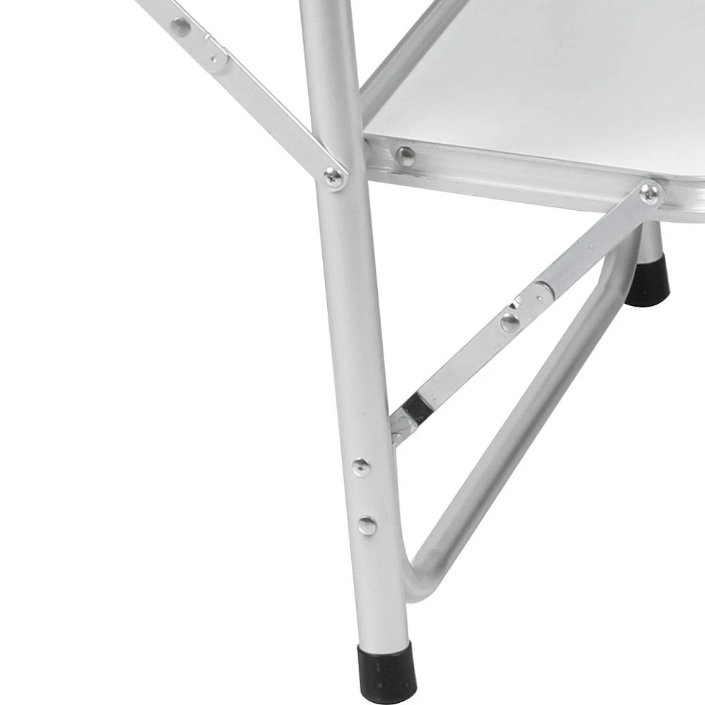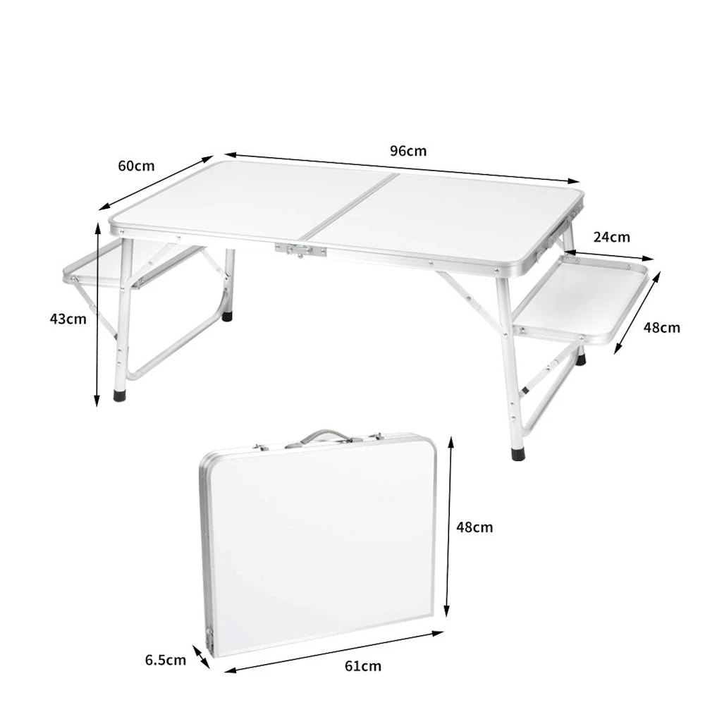 Roll down the highway. Get onto the backroads. Set up your tent. Flip open your new camping table. Start preparing your dinner. Cook it over the coals. Hop inside your tent. Perfection. Invite all your friends over for a summer bbq. Lay out snacks on your fold up table. Cook some sausages steaks and portobello mushrooms. Use your second folding table to display your cooking prowess. Pull your folding camping table out of your car boot again and again. Keep grabbing it out of your garage. Your large card table will stand the test of time. Even better fold out the sides for extra table space. What is the best thing about your new folding table? Perhaps it is the fact that it folds. Maybe you don’t need your table all the time. Easily store it away until your next party. Carry your table wherever you go. Coming in at only 4.3kg you can easily lift it from your car to your picnic spot. Keep your food up off the ground and lounge out on your picnic rugs. Key Features Lightweight and portable Foldable design with carry handle Sturdy aluminium construction Smooth MDF tabletop Flip-out side tables No assembly required SPECIFICATION: Frame material: Aluminium Tabletop: MDF board Weight capacity: 40kg Weight: 4.3kg Dimensions (open): 96cm x 60cm x 43cm (L x W x H) Dimensions (folded): 61cm x 6.5cm x 48cm (L x W x H) Dimensions (side table): 48cm x 24cm (W x L) Colour: Silver PACKAGE CONTENT: 1x Levede Foldable Camping Table