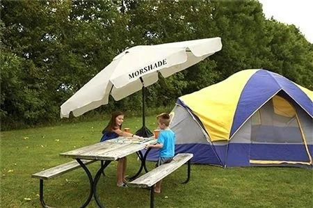 UPF 50+ PROTECTION | UPF 50+ polyester blocks 99% of UV rays. Blocks sun 100% head to toe for group of full size chairs. 45-degree tilt, telescopic pole adjusts position/height for all day shade. Crisp/cool ivory color reflects sun.