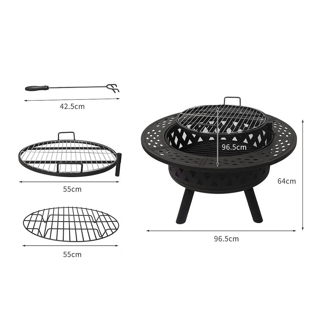 Moyasu Fire Pit BBQ Grill Outdoor Fireplace Camping Firepit Steel Portable 38″