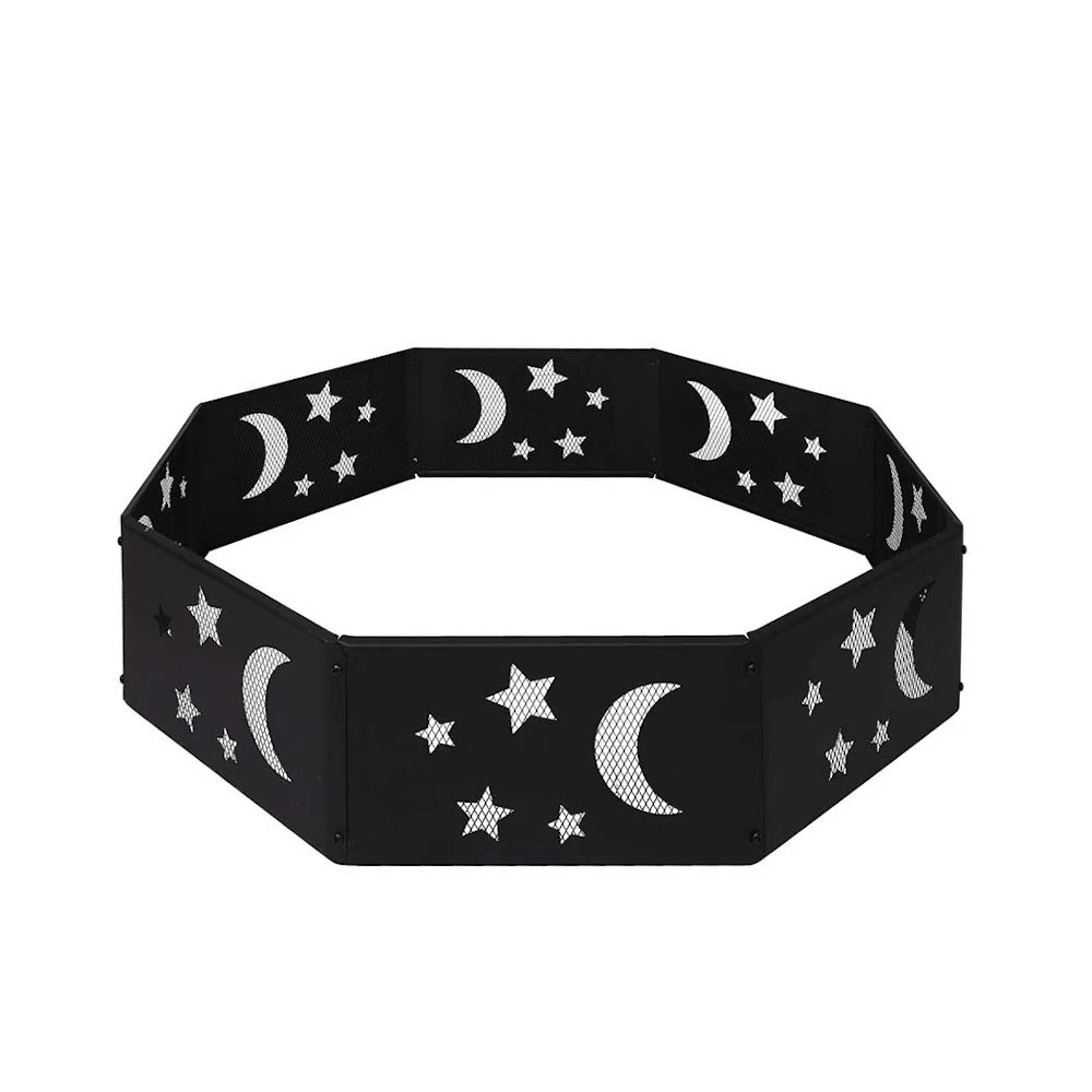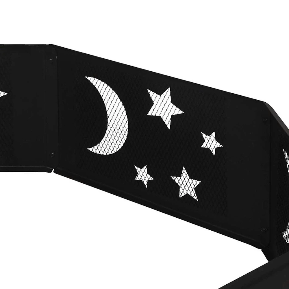 Stay warm outside with your portable fire pit. Have a few drinks and chat to your friends. Gather around together and watch the fire burn down. It is more about what isn’t said than about what is. Invite your friends around for a warm and cosy night by your firepit in winter. In summer cook some damper over the fire and drink some beers. Turn that dead wood into friendship currency. Set up your fire pit ring on any patch of ground. We suggest not putting the metal fire ring on your wooden deck. If you do you will soon have an extra-large hole in your deck. Invite your boyfriend for a romantic night around your garden fire pit. Cuddle up and hear the wood crackle as you chat about life. All that set-up was worth it. Always stay safe with your fire pit. Pouring petrol on it is fun but dangerous and not recommended. We recommend wood or charcoal for fuel. You can just use some newspaper and matches to start the fire. Key Features Star and moon cut-outs Better ventilation Sturdy construction Wood or charcoal applicable Quick to assemble Note: Recommended wearing gloves for installation SPECIFICATION: Brand: Moyasu Material: Steel Weight: 3.5kg Dimension: 91cm x 91cm x 22.8cm (W x D x H) Colour: Black PACKAGE CONTENT: 1x Moyasu Fire Pit
