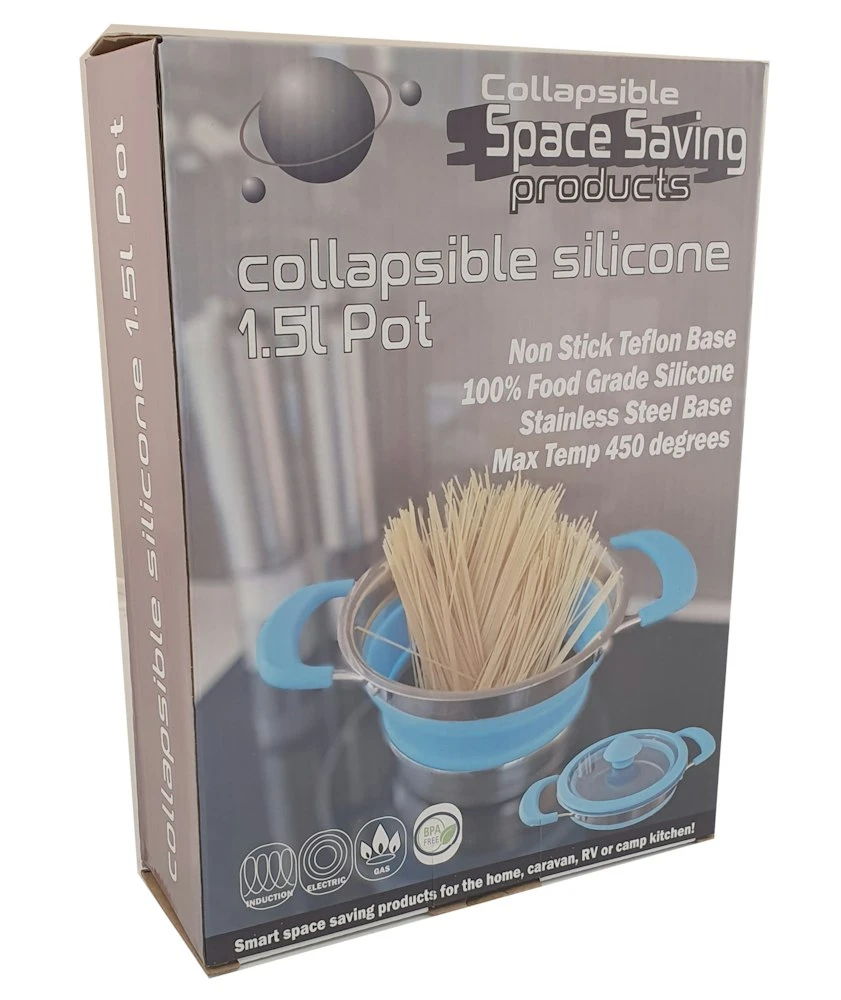 Fantastic space saving ideas Perfect for the cook on any trip Great for camping, caravan, boat, hiking and home. Made of 100% food grade silicone with FDA, SGS-EEC and TUV-LFBG approvals BPA Free. Temperature range:-40~230oC Safe to use in ovens, dishwashers and freezers NON-STICK Teflon Base and easy to clean. Compatible with Induction base cooktop. More durable lifetime than any other bakewares Easy to store, lightweight, and portable. It is relatively soft and flexible, and will not dent or rust. You can bump or drop it without worrying it might break .