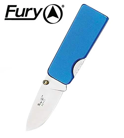 Fury Pee Wee Blue Pocket Knife has a strong stainless steel blade with a bright blue handle for easy spotting and a money clip on the back.