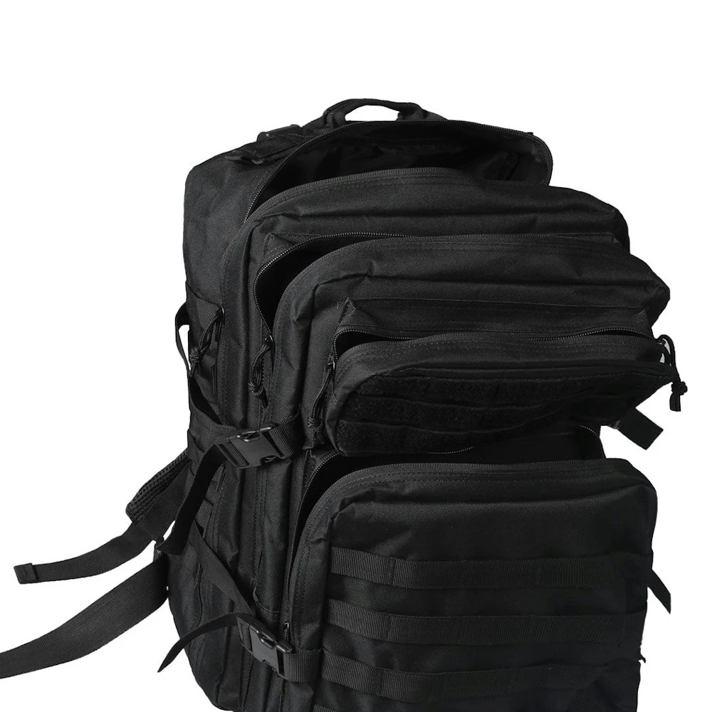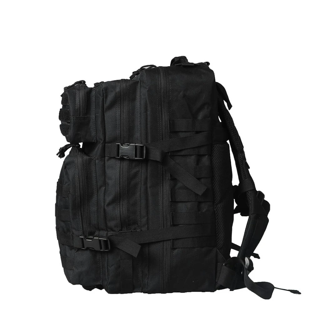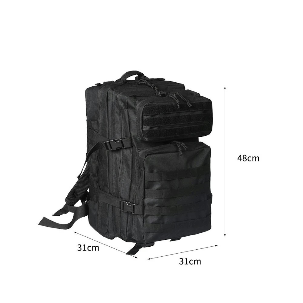Explore new areas with your hiking backpack. There are almost limitless trails to start your new adventure. Experience nature like never before. Carry everything you need and leave nothing behind. Spend a day on the slopes. Store everything you need in your backpack. Carry it all out into the middle of the rugged wilderness. Or you can always just leave it in the base camp locker. Carry water snacks extra clothes waterproof gear and more in your travel backpack. You have many pockets for easy access. Use carabiners to hang things off your back pack. Rain can ruin your day but at least things will stay dry in your waterproof backpack. Get in shape as you carry everything you need out bush. Dry clothes are best clothes. Meet new people. Bump into fellow hikers and you travel outdoors. Ask some questions and share some snacks straight out of your black backpack. Key Features 45L capacity Multi-compartment Adjustable mesh shoulder strap Various hanging spots Waterproof fabric Chest and side buckle straps Reinforced seam SPECIFICATION: Brand: Slimbridge Material: 900D Oxford fabric Weight: 1.3kg Capacity: 45L Dimension: 31cm x 31cm x 48cm Colour: Black PACKAGE CONTENT: 1x Slimbridge Military Backpack