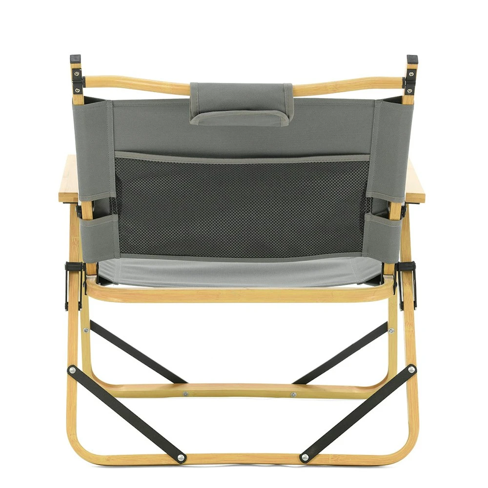 Stylish and multi purpose seating solution. Durable polyester fabric with mesh storage pocket. Lightweight faux timber aluminium frame. Folds for easy transport and storage. Carry bag included. Specifications: