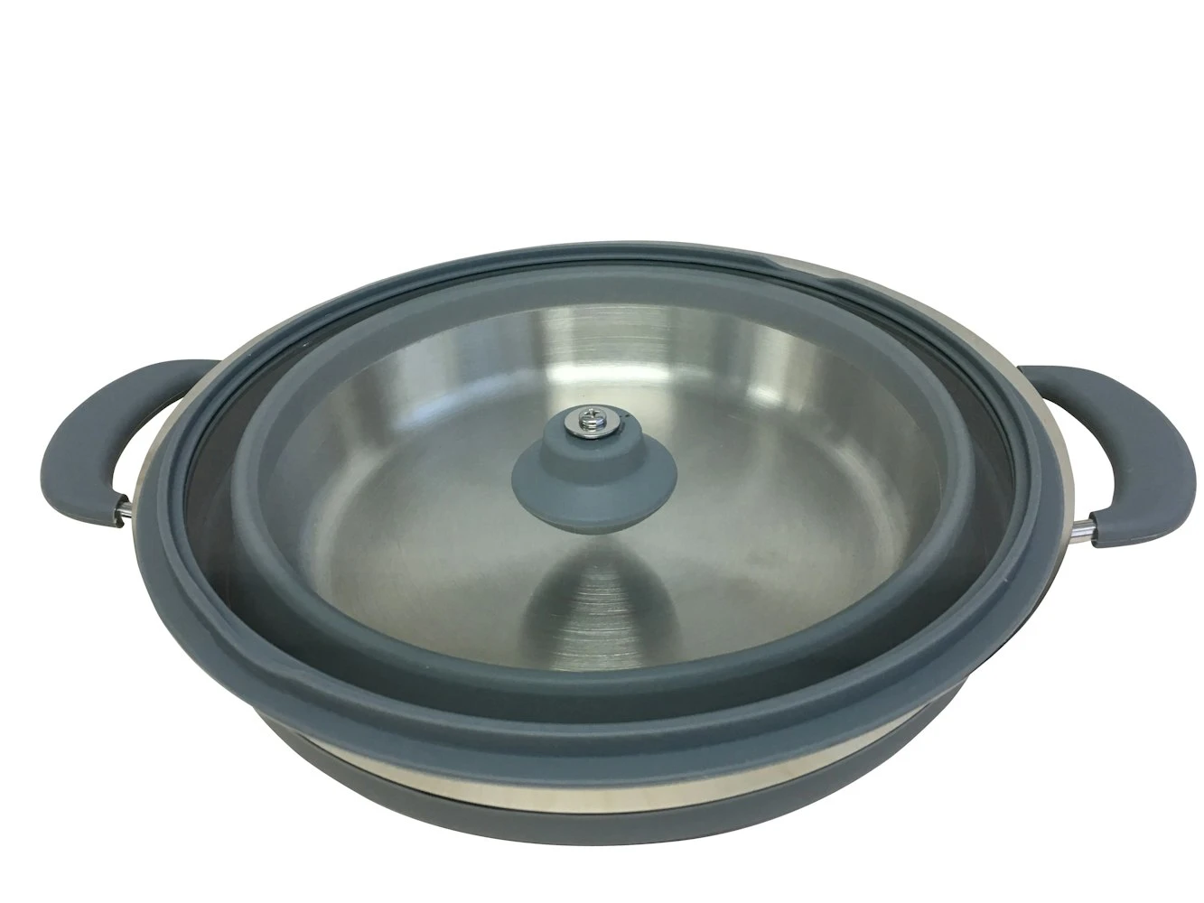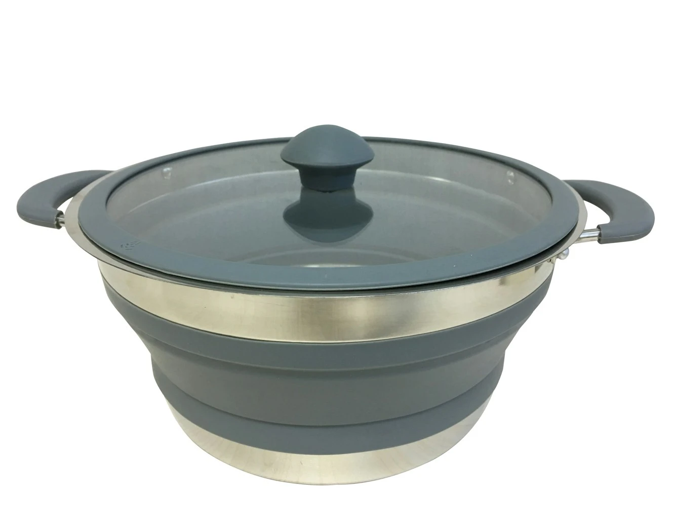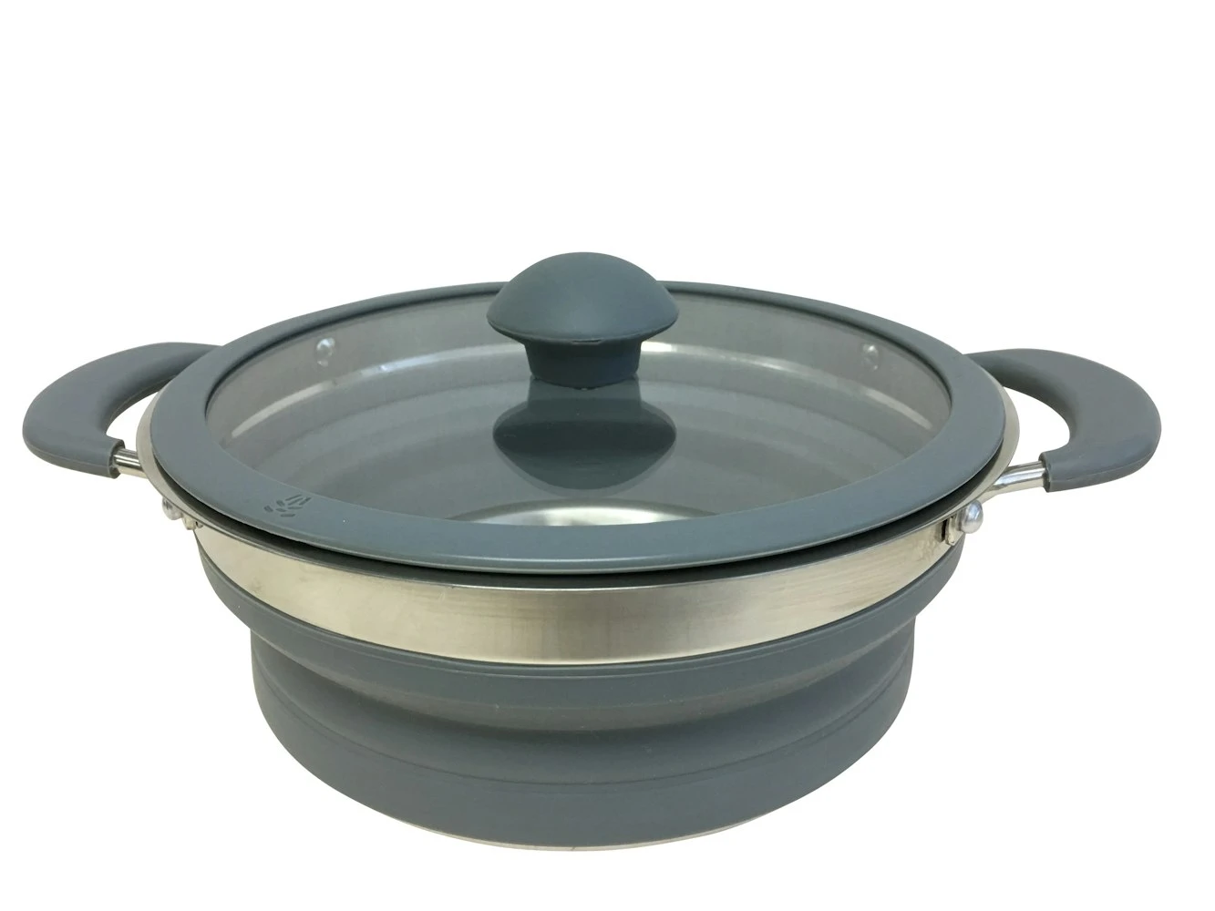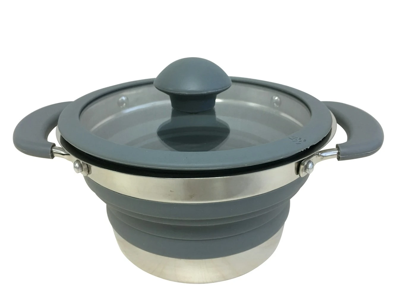 Grey saucepan with lid, collapsible design. Available in 3 sizes – 1L, 1.5L, 3L Tasty, hearty meals are not to be missed when living away from home in an RV! Instead you can enjoy your favorites anywhere when using a reliable saucepan. Enjoy the fabulous benefits of delicious meals without having to deal with the traditional heavy, space-consuming stock pots and camp ovens that require maintenance. Features: