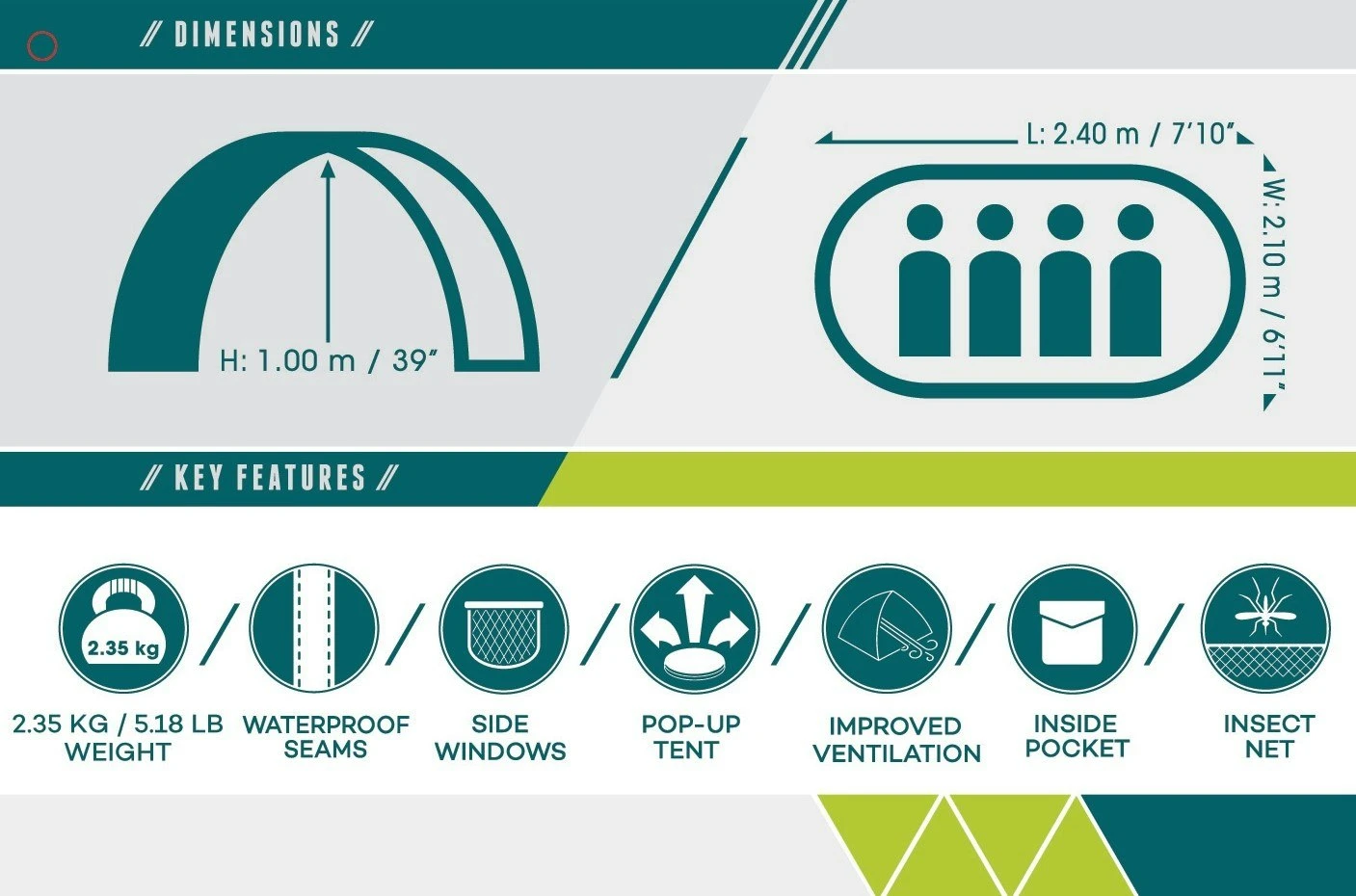 This is more than basic tent, this tent has been designed to allow superior ventilation, while keeping the sun directly away. This shelter allows up to 4 people.