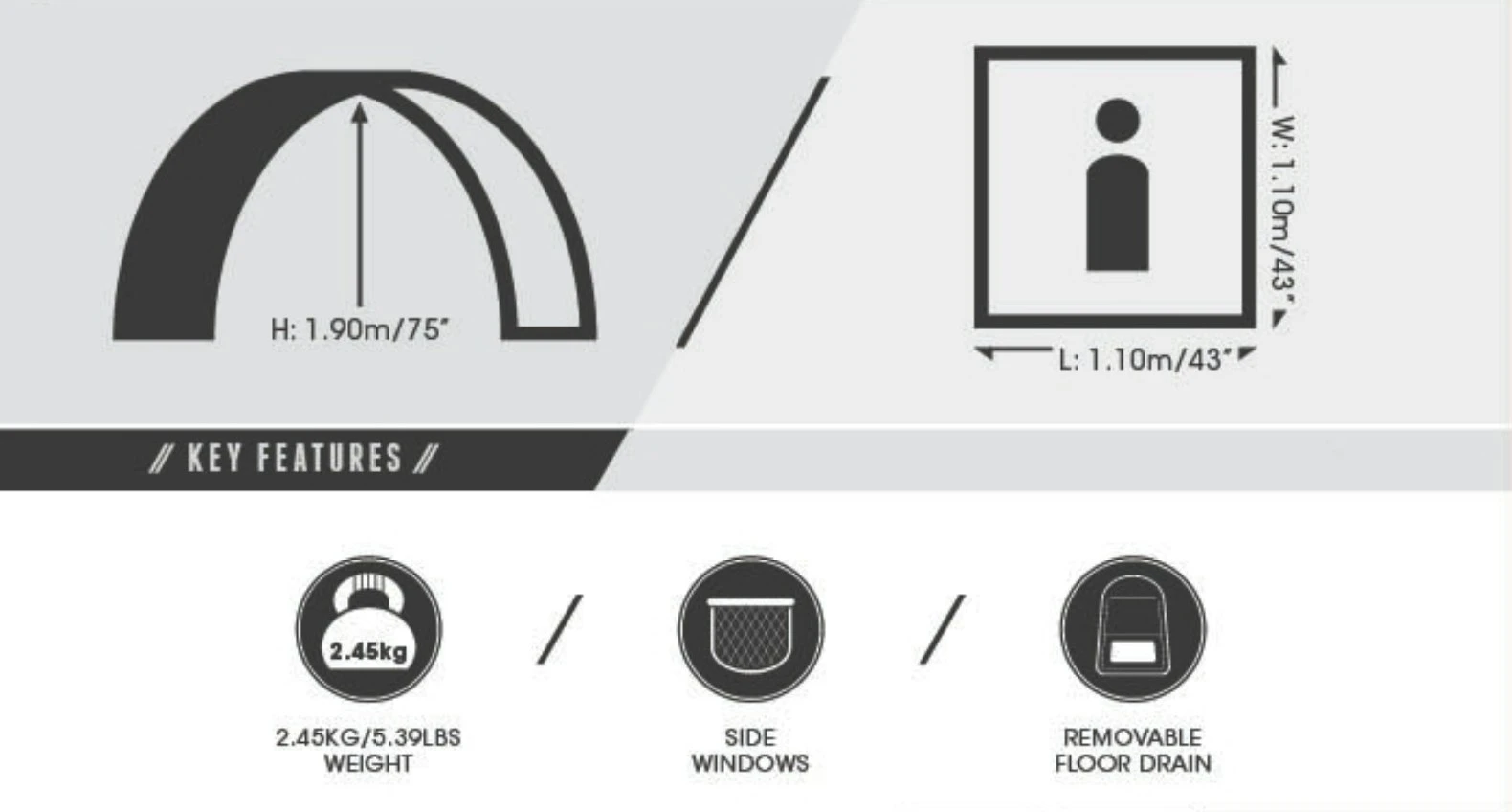 – Two side windows and removable floor drain