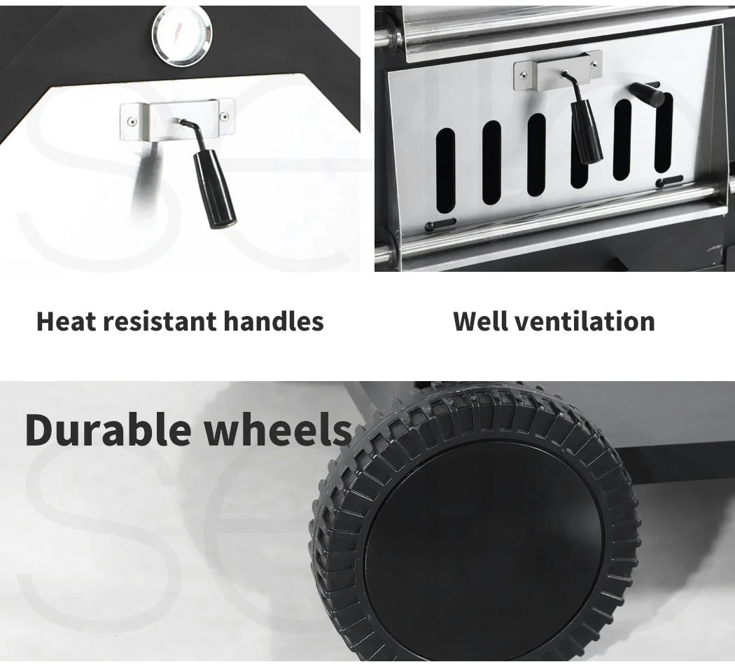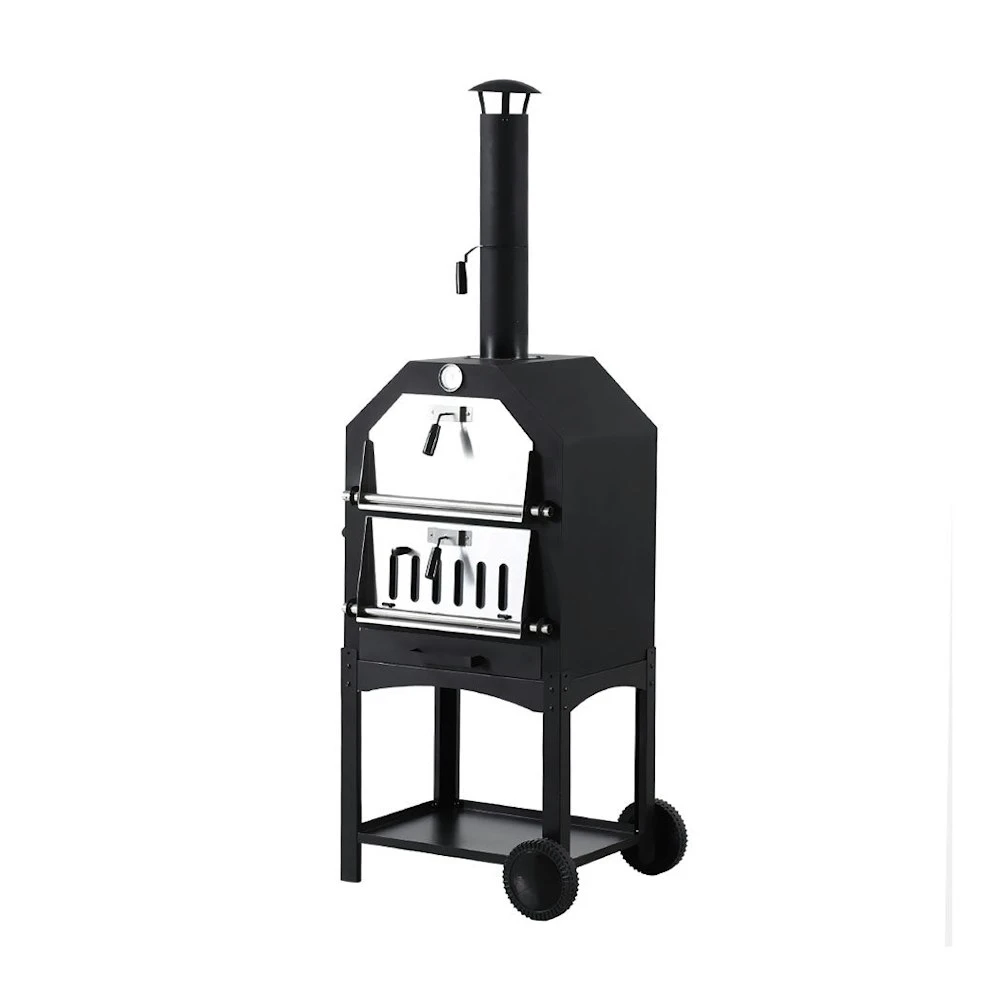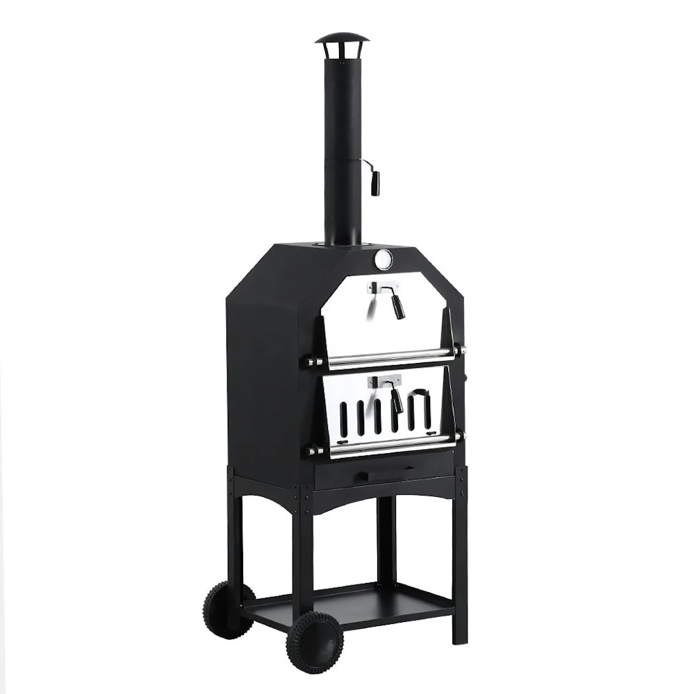Traderight Group 3in1 Pizza Oven Charcoal BBQ Grill Steel Smoker Outdoor Portable Barbecue Camp