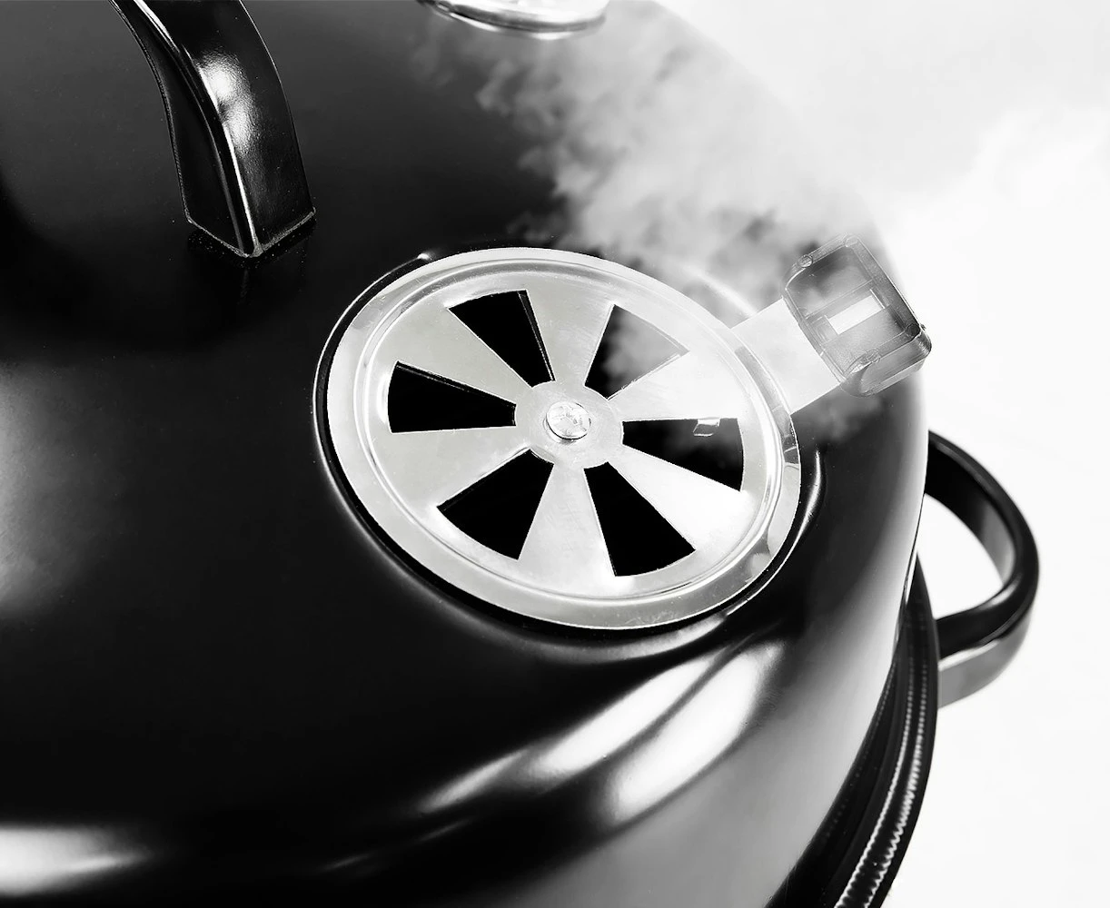 With the lid on, you can smoke to your heart’s delight your favourite meats with indirect heat that distributes evenly throughout the cooking process so that every fibre of meat get its due reception.