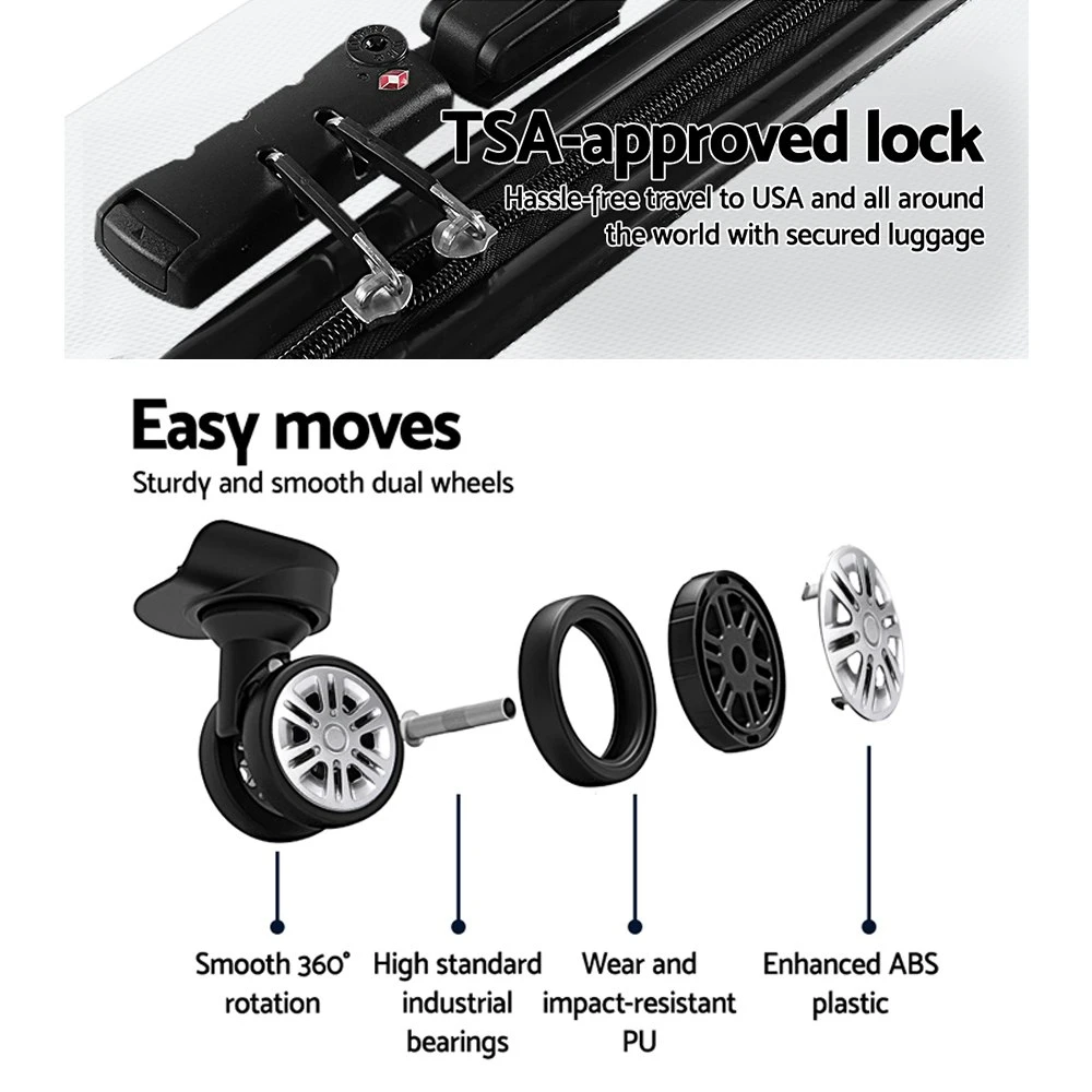 Featuring a durable hard shell, smooth dual wheels and secured TSA-approved locks, our luggage trolley set is easy to carry or manoeuvre around airports, train stations or any transport hub where getting there on time is as important as arriving with peace of mind. Super lightweight and yet strong and sturdy, the Wanderlite Trolley Set comprises 28", 24" and 20" sizes of which both the latter can be kept in the former. Aluminium pull rod, corner guard protectors and top and side handles add to the effortless handling of each luggage.