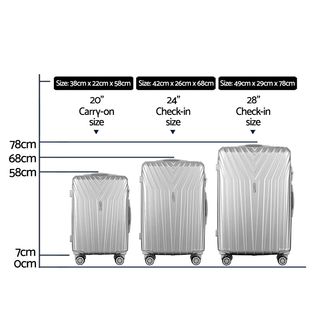 Featuring a durable hard shell, smooth dual wheels and secured TSA-approved locks, our luggage trolley set is easy to carry or manoeuvre around airports, train stations or any transport hub where getting there on time is as important as arriving with peace of mind. Super lightweight and yet strong and sturdy, the Wanscalederlite Trolley Set comprises 28″, 24″and 20″ sizes of which the two smaller ones can be kept in the largest luggage. Aluminium pull rod, corner guard protectors and top and side handles add to the effortless handling of each luggage.So start packing with our Wanderlite 3-piece Luggage Trolley Set and begin your wanderlust today!