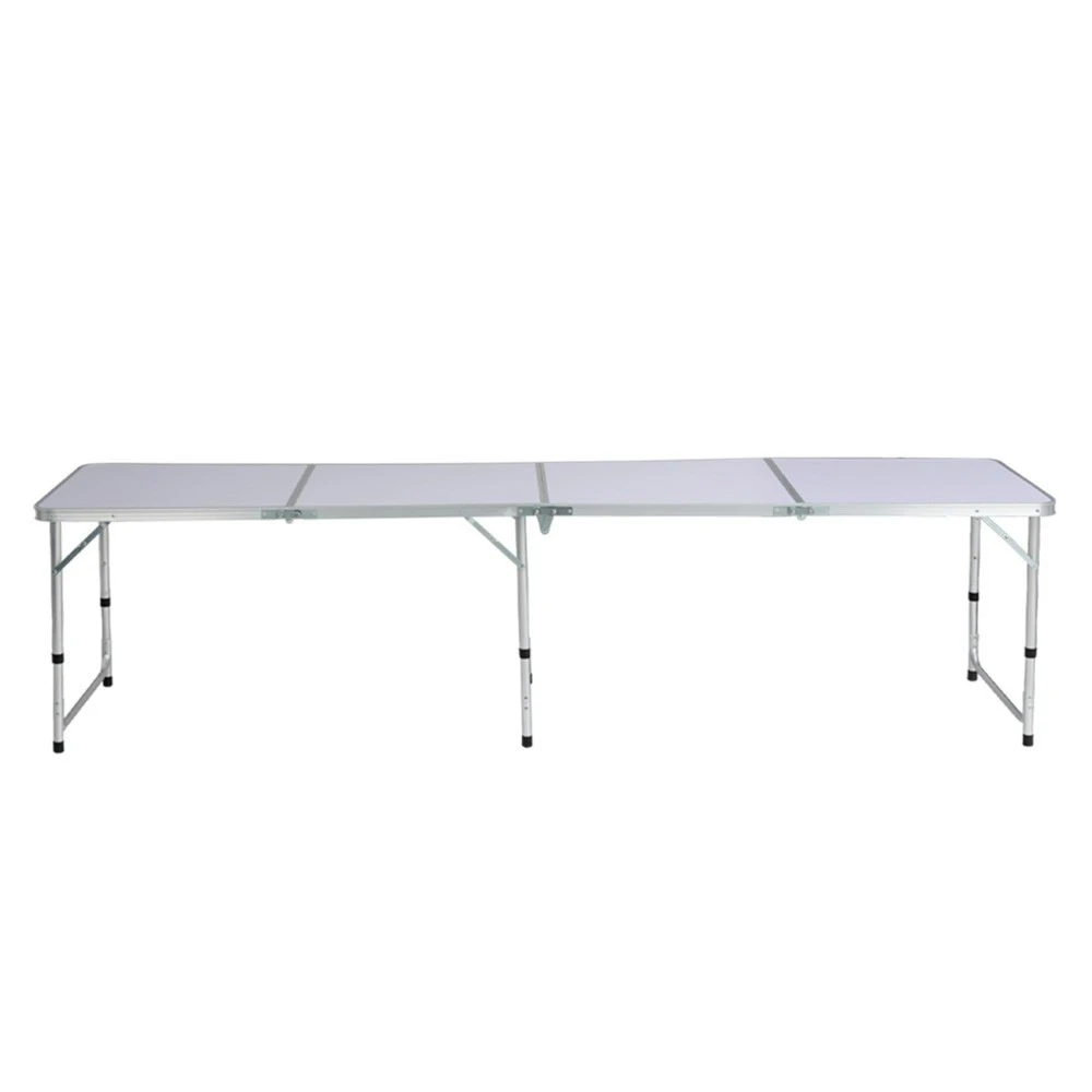Made of strong aluminium throughout, the Camping Table can handle up to 40kg in weight with its very spacious, rust-resistant MDF table top. Better still, the 240cm long Camping Table has three adjustable height settings of 54cm, 61cm and 69cm to accommodate various user environments. Not least, the rounded corners ensure the Camping Table is safe to use around kids and adults at all times.