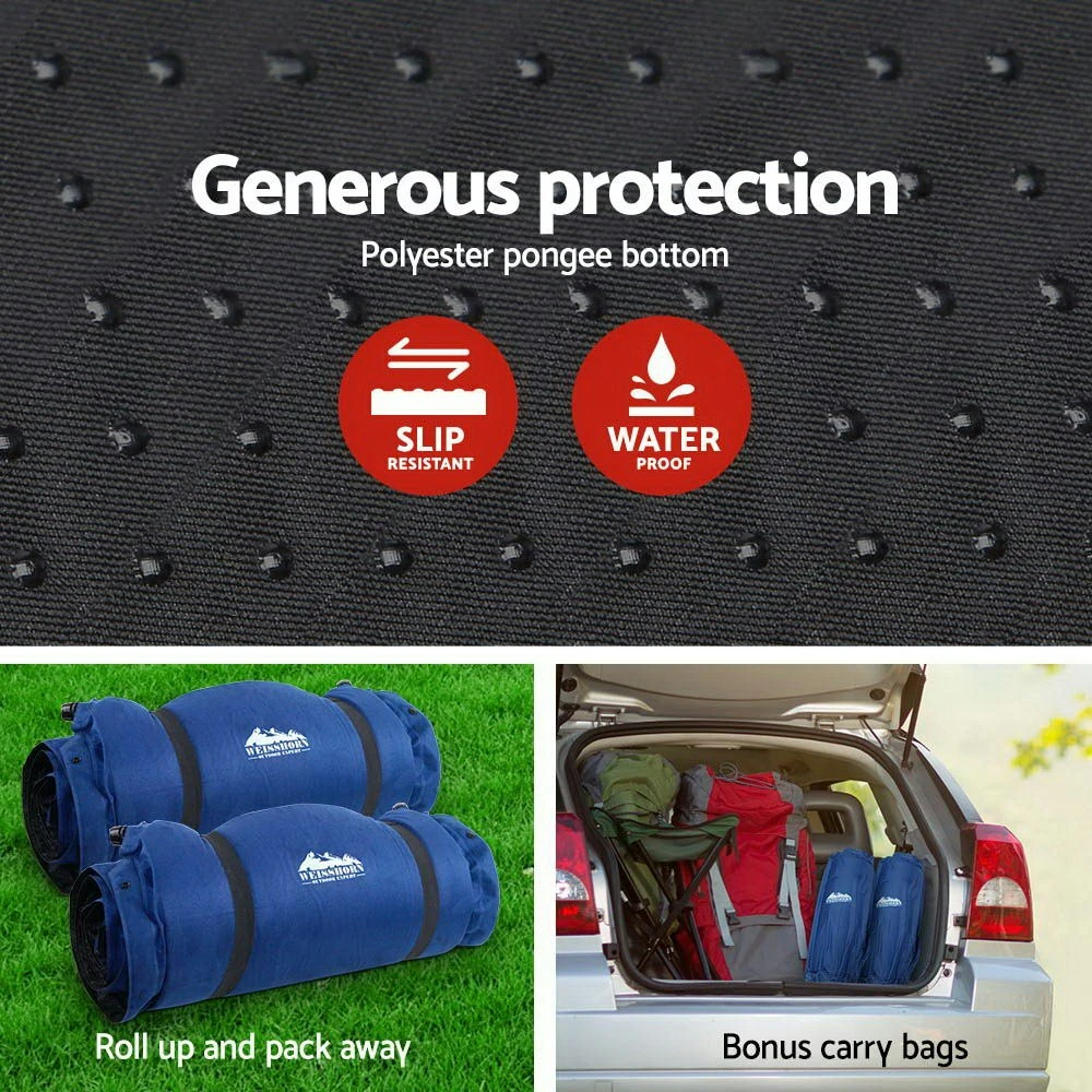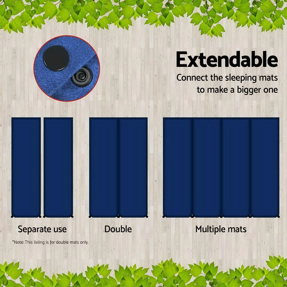Weisshorn Self Inflating Mattress 10CM Thick Double Camping Sleeping Mat Air Bed Navy Suede Surface