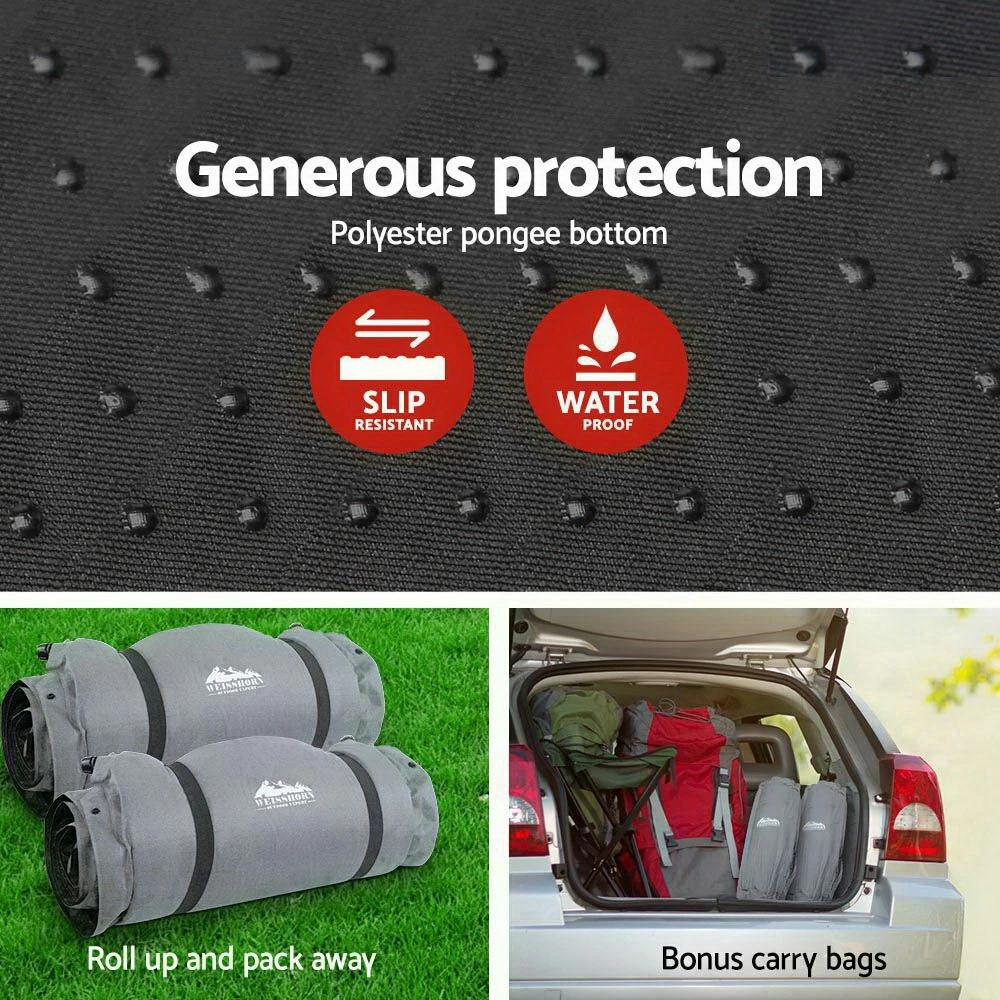 Any camper will appreciate the value of a good sleeping surface in the outdoors. It can make the difference between a tedious or an exhilarating experience in the wild. And that’s where the Weisshorn Double Self-inflating Mat can help make resting a lot more comfortable for the happy wanderer. As the name says it all, the waterproof Mat self-inflates through two built-in valves in just 60 seconds, presenting you with a smooth sleeping surface amidst all types of terrain almost instantly. Made from high density 10cm thick polyurethane foam, the Mat is wrapped with a faux suede surface top and anti-slip polyester pongee bottom. That way, you lie on a smooth and comfortable surface with a mat that does not slip or move with your every turn while sleeping or shifting around. Need more resting surface? Just connect the two mats via the built-in buttons for an enlarged area. In fact, you can extend the mat multiple times through this simple and convenient process. And when all is done, just roll up the deflated mat and packed it into the carry bag for your next destination. Explore the wild knowing that you have ready comfort on whatever ground you’re treading with the Weisshorn Double Self-inflating Mat. Features: Durable and water resistant 10cm thick polyurethane foam Efficient self-inflating valves Joinable mat Easily roll up mat for easy transportation and storage Comes with carry bags Ideal for year-round camping Specifications: Material: Polyurethane foam w/ PVC coating Inflation time: 60 seconds Colour: Grey Size: 190x112x10cm Weight: 7.2kg Package Contents: Weisshorn Self Inflating Mat x1 Carry bag x2