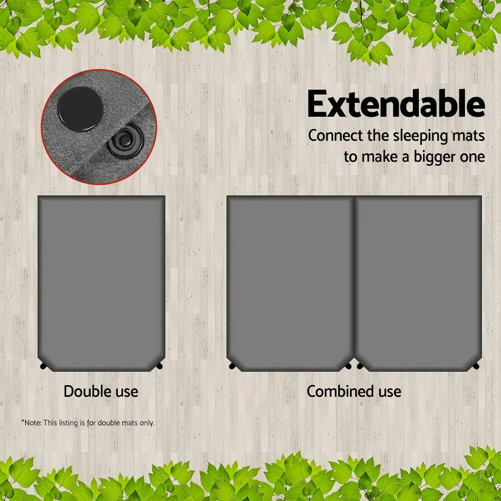 Weisshorn Self Inflating Mattress 10CM Thick Double Camping Sleeping Mat Air Bed Pad Grey