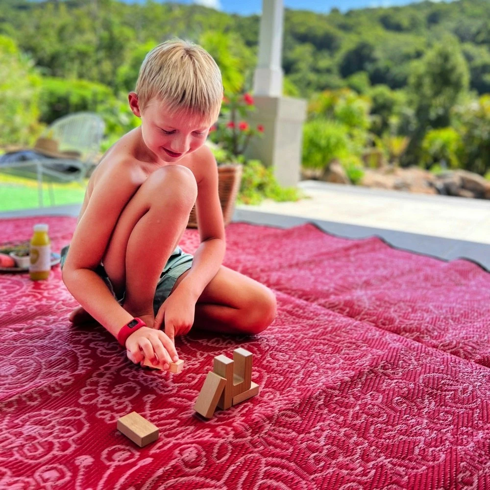 The 2.7m Woodstock Cherry mat is easy to look after – spills wipe off with ease whilst heavier soiling can be hosed off. Fold up your mat for storage or transportation as you move from home to the park or beach, or from your lunch break to a study session.