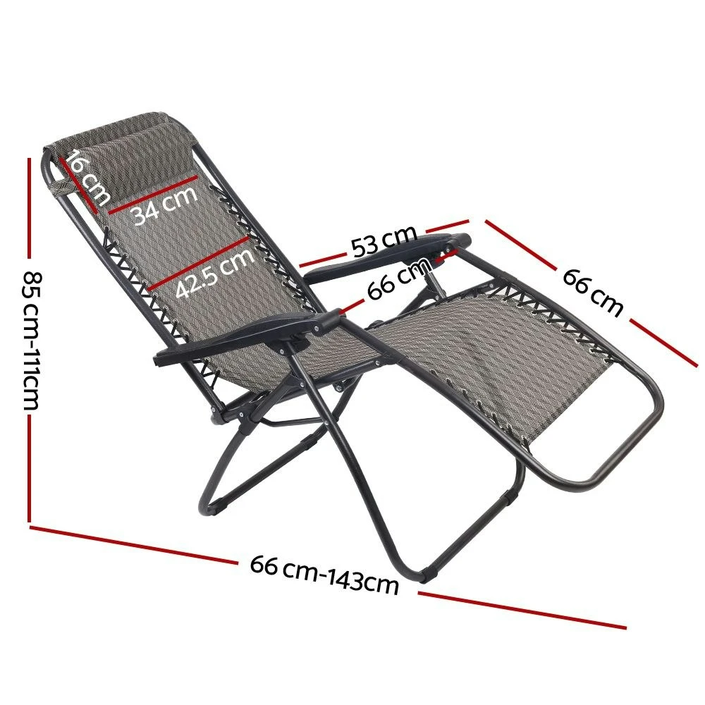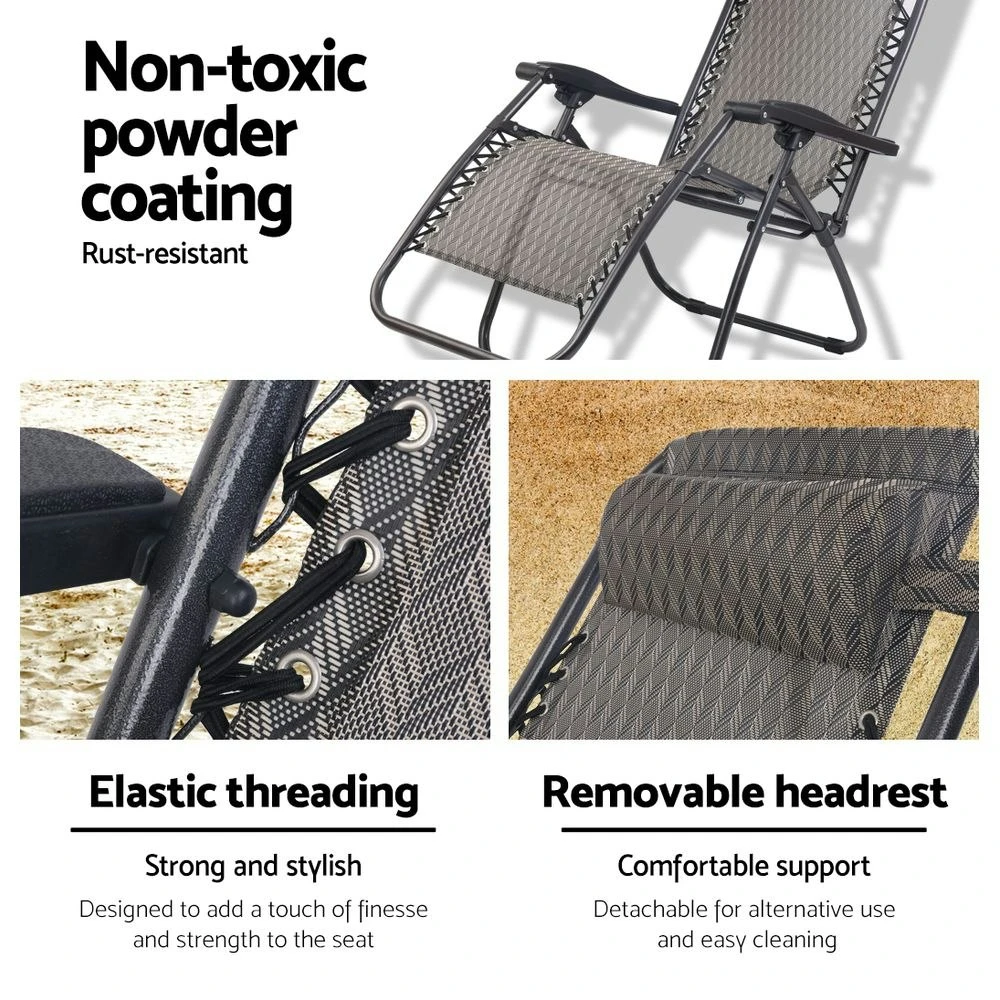 Zero Gravity Chair Outdoor Chairs Beach Lounger Portable Reclining Sun Lounge Folding Camping Grey