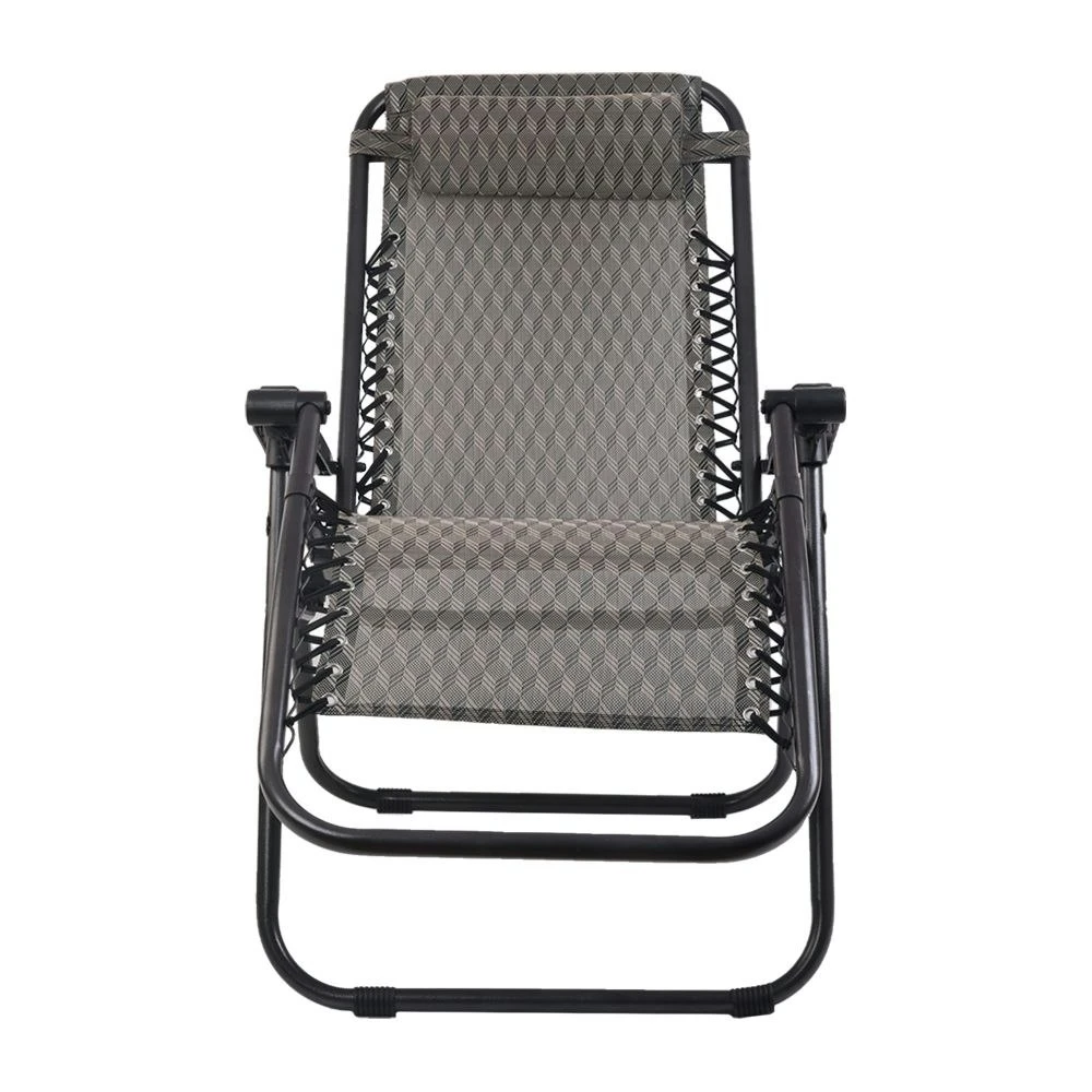 Zero Gravity Recliner Grey Despite the name, our lightweight Zero Gravity Recliner can easily take up to 150kg of body weight under gravity. With its contemporary design and sleek finish, the Zero Gravity Recliner is simply one of a kind. The unique tie-downs with the one-piece ventilated plastic mesh is a definite talKing point. Everytime you have a seat, you’re assured of a sit-down free of stress and heat. But more importantly, the Recliner does its job perfectly in letting you lounge in comfort with the padded headrest and pleasurable seating. The Recliner can be adjusted to recline between 90 and 166 degrees to enable you to obtain maximum pleasure from relaxing on it. In fact, the Recliner can even help to ease some of your back pains and aches as there is less pressure exerted on your lower back with your legs elevated. Built with a sturdy metal frame with non-slip rubber shoes along the base, the Recliner is aptly suited for reliable use. Not least, the Recliner has a flexible locKing mechanism and can be easily folded to bring it anywhere to enjoy. On the patio, at the beach, camping or on a road trip with your campervan, the Zero Gravity Recliner is a must-have to add to your relaxation activities. Order yours today. Features * Ventilated one-piece mesh seat * Removable and adjustable padded headrest * Steel frame * Able to recline up to 166 degrees * Foldable design * Lightweight and durable * Non-slip feet * Easy assembly Specifications Seat frame: Steel Seat fabric: Textilene Maximum holding weight: 150kg Folding dimensions: 94 x 64cm Height: 85 ~ 111cm Length: 66 ~ 143cm Width: 66cm Colour: Grey Package Content 1 x Zero Gravity Chair